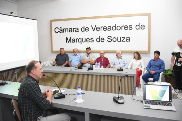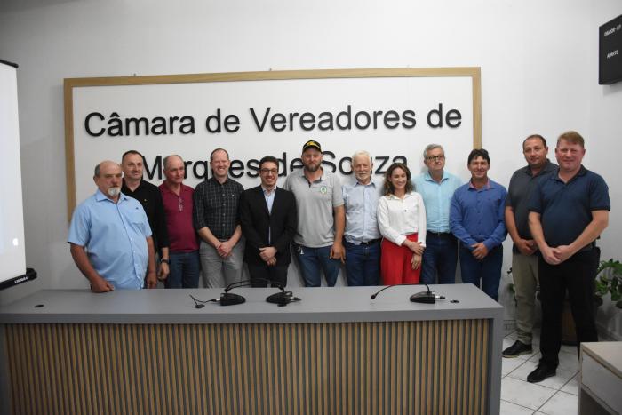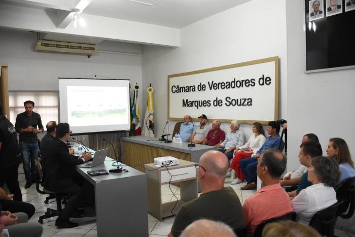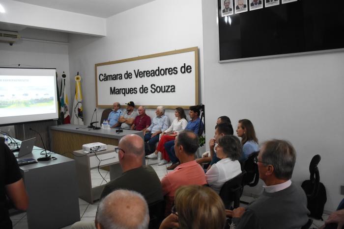 Marques de Souza – Na tarde desta quinta-feira, dia 16, a Câmara Municipal de Vereadores recebeu os diretores do Grupo Vogar, que apresentaram o projeto do Centro Industrial Vogar Terras Altas, a ser implantado às margens da BR-386, no km 331, em Linha Perau.