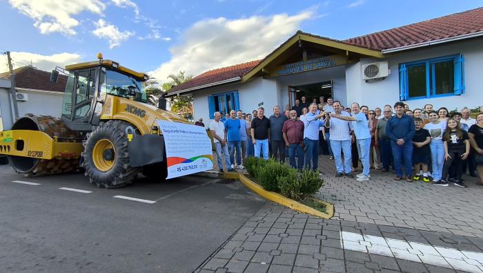 Marques de Souza - A Câmara Municipal de Vereadores de Marques de Souza realizou, na tarde desta quinta-feira, 09 de abril, mais uma sessão ordinária. Antes do início da sessão, os vereadores participaram da entrega de um rolo compactador. O maquinário chega por meio do Ministério da Agricultura, Pecuária e Abastecimento indicado pelo Deputado Federal Afonso Hamm, através da bancada do PP, no valor de R$ 438.760,00.